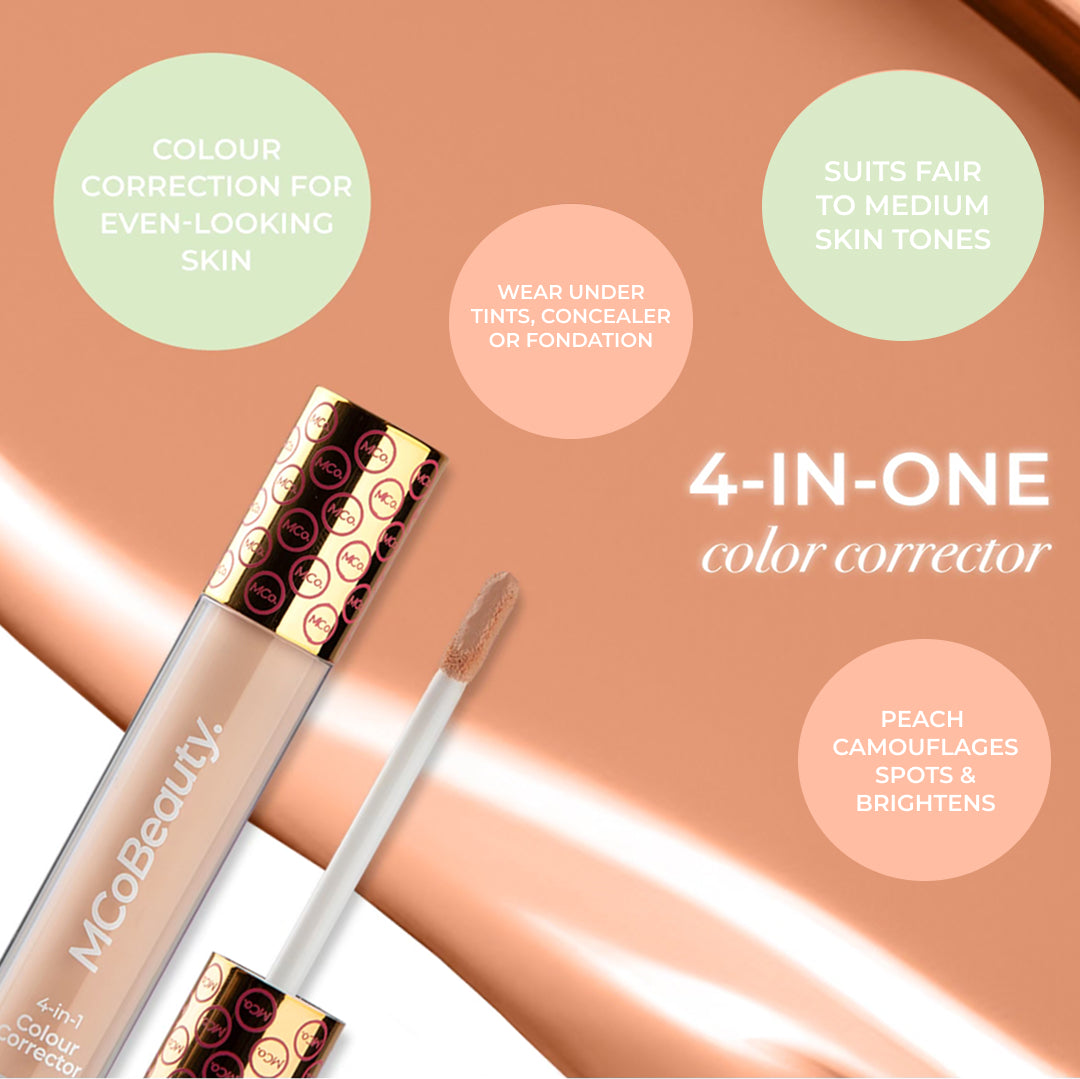 MCoBeauty 4-IN-1 COLOR CORRECTOR is designed to diminish the look of imperfections. while achieving a more bright. even skin tone. This 4-in-1 formula works to color correct. hydrate. brighten and conceal complexion.