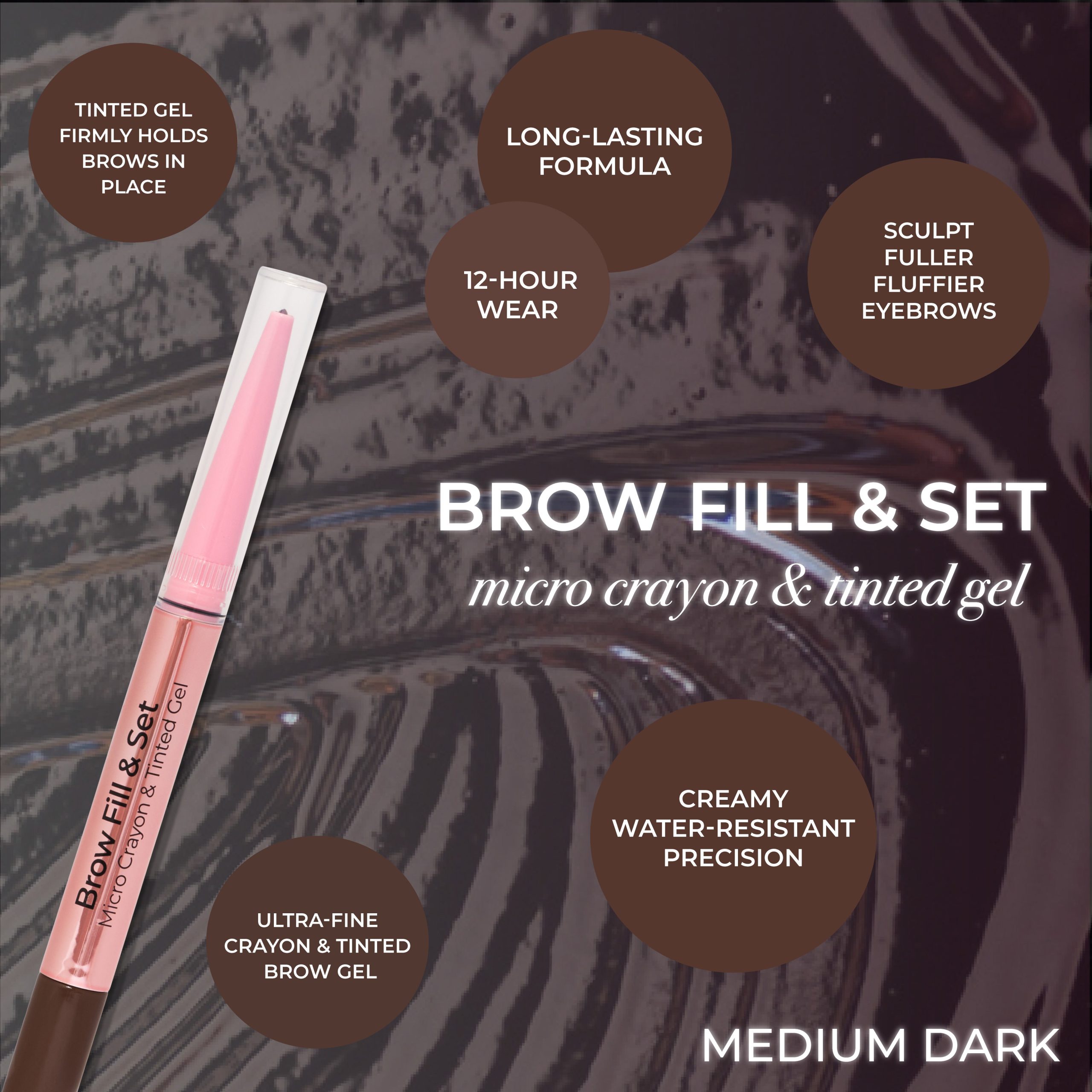 A 2-in-1 double-ended brow product. featuring an ultra-fine crayon and tinted brow gel that helps you instantly sculpt fuller. fluffier eyebrows. Shape and define brows with the creamy. water-resistant. ultra-fine precision brow pencil and add volume with the tinted brow gel.