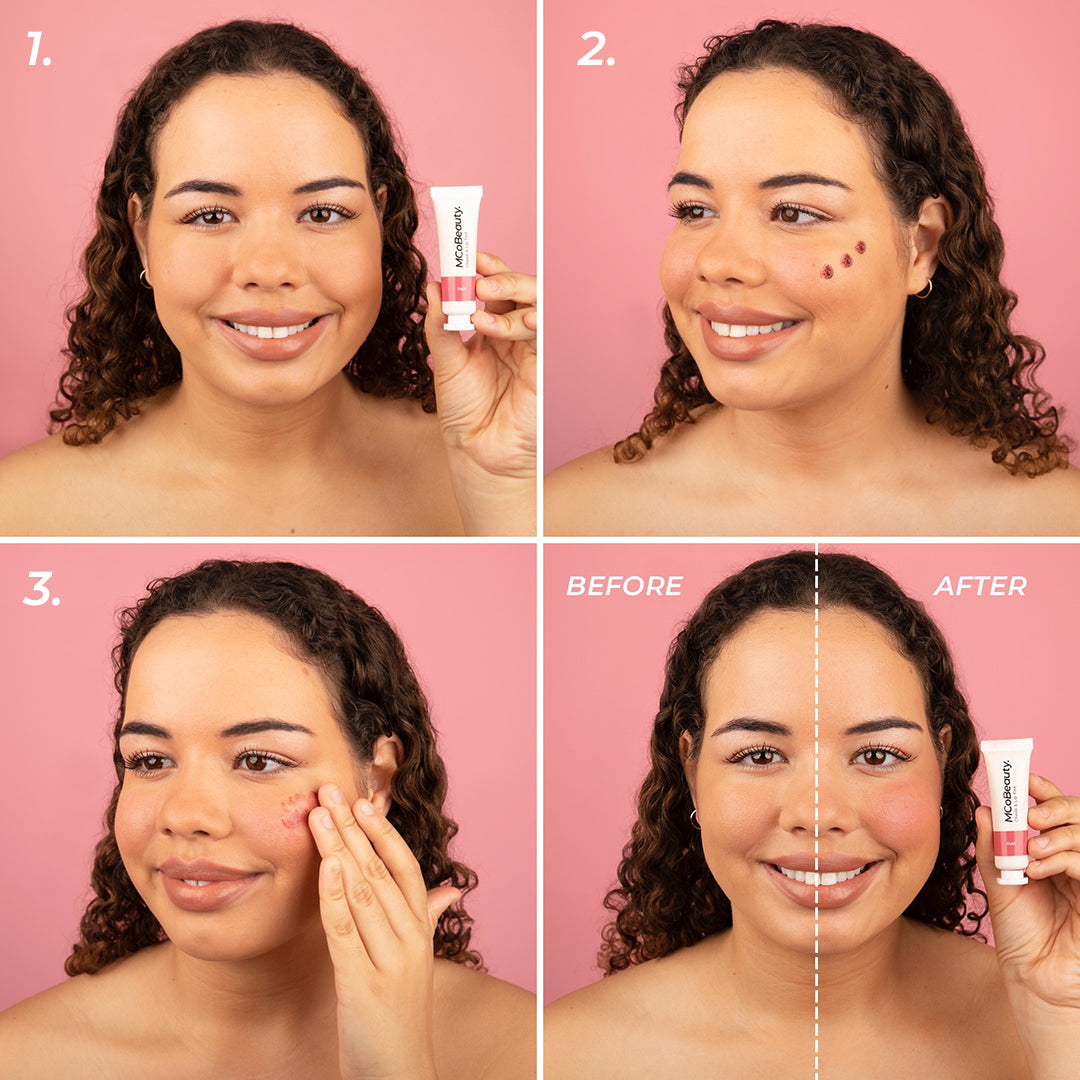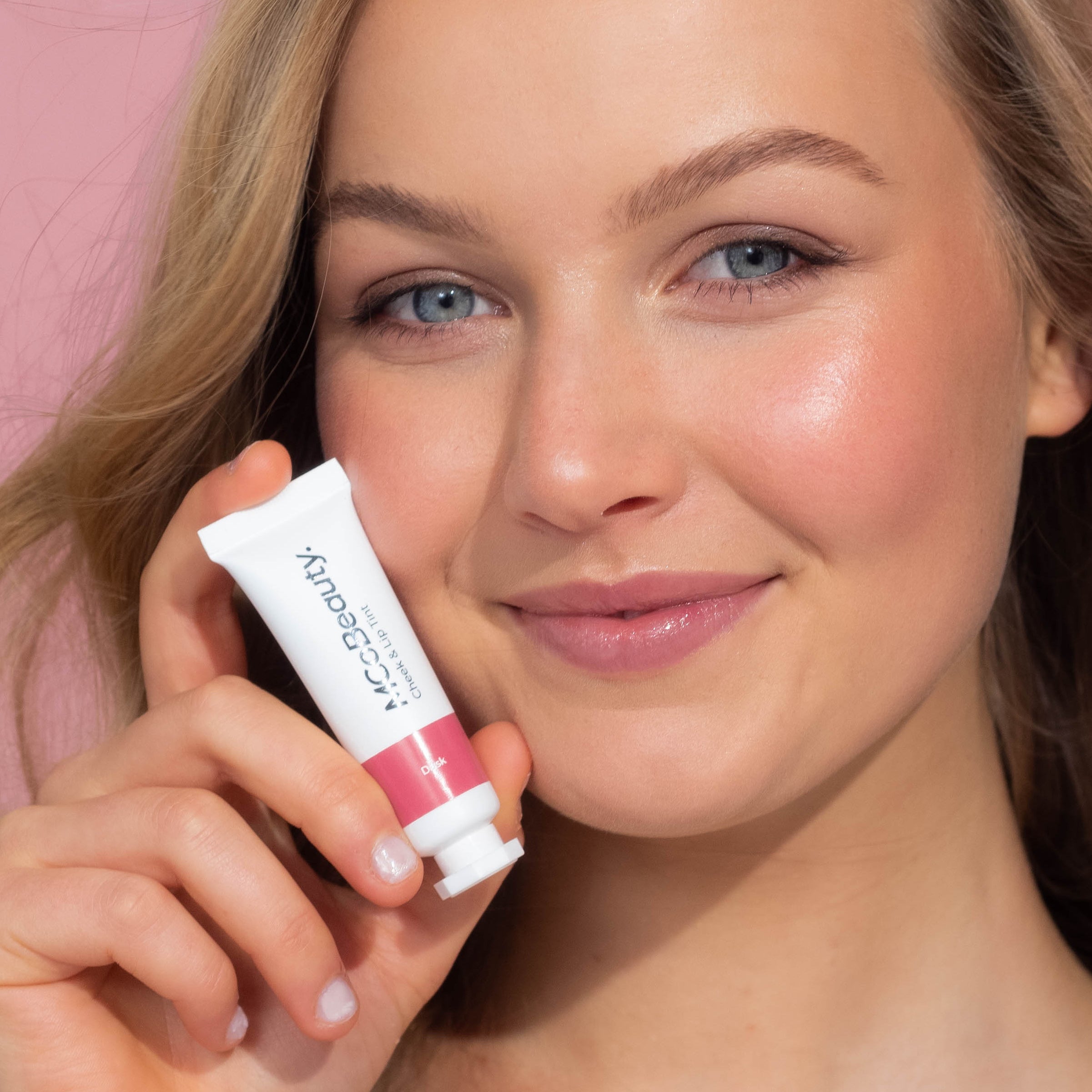 The MCoBeauty CHEEK & LIP TINT blurs the line between a dewy gel and a stain for a luminous pop of color. The lightweight formula offers buildable intensity from a sheer radiance to a bold flush.