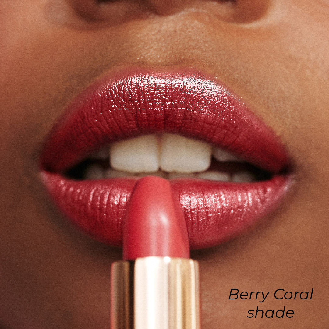 Perfect every pout with the MCoBeauty CREME MATTE LUXE LIPSTICK. starring the ultimate berry coral shade that matches the natural undertones of your own lips. Featuring a long-wearing yet hydration and nourishing formula that envelopes lips in comforting moisture without smudging or bleeding.