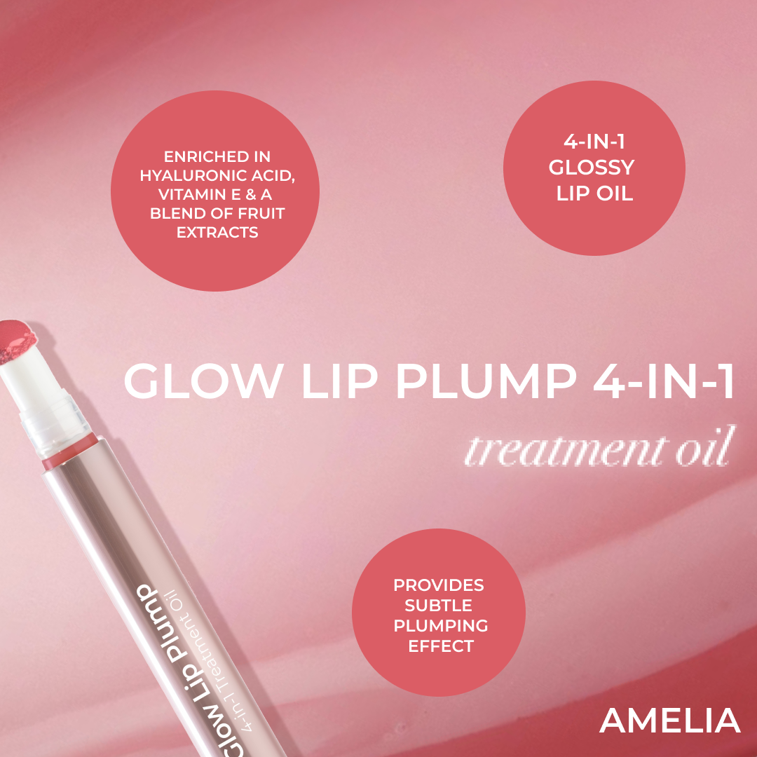 MCoBeauty GLOW LIP PLUMP 4-IN-1 TREATMENT OIL combines the benefits of a hydrating lip oil with the high-shine plump of a gloss to give your pout a juicy finish. The soft sponge tip delivers the perfect amount of product. drenching your lips in the high-shine. glassy oil.