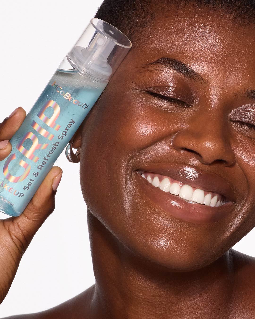 MCoBeauty MAKEUP GRIP SET & REFRESH SPRAY is your makeup must-have for dewy. transfer-proof looks. This lightweight. dual-phase formula locks down your makeup for long-lasting freshness. reducing the need for touch-ups. With skin loving ingredients Agave Extract. Hyaluronic Acid. Niacinamide and Vitamin B5. this weightless mist envelops the complexion in a veil of rejuvenating hydration for the ultimate radiant finish. For an extra dose of moisture. refresh and revitalize your face with just a few spritzes whenever you. or your skin are in need of a pick-me-up.