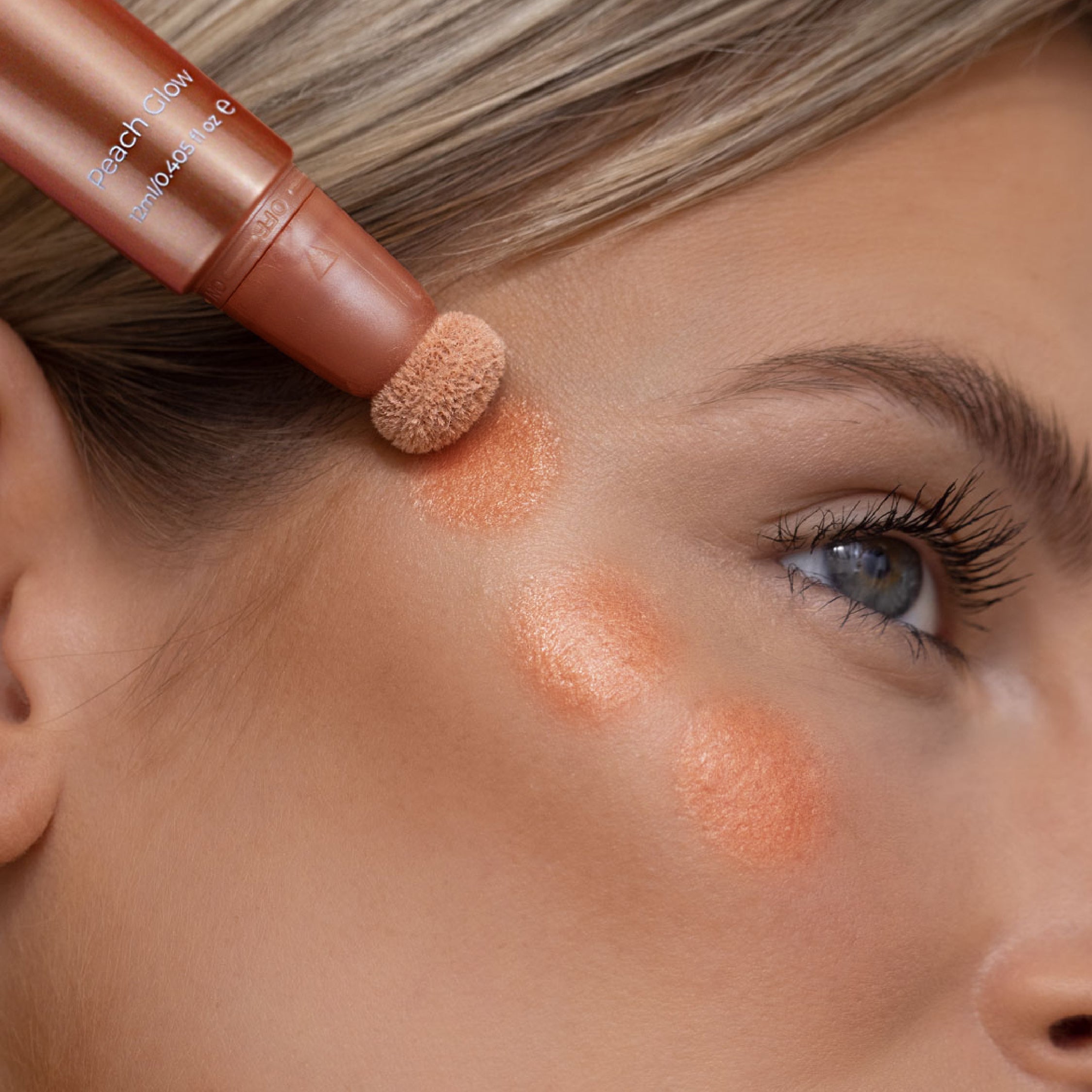 The perfect illuminating liquid highlighter wand to achieve gorgeously glowing skin in a flash! The creamy. light-reflecting formula features super fine. pearlescent particles that capture and reflect light. while the soft cushion applicator dispenses product evenly. making it ultra blendable and easy to use.