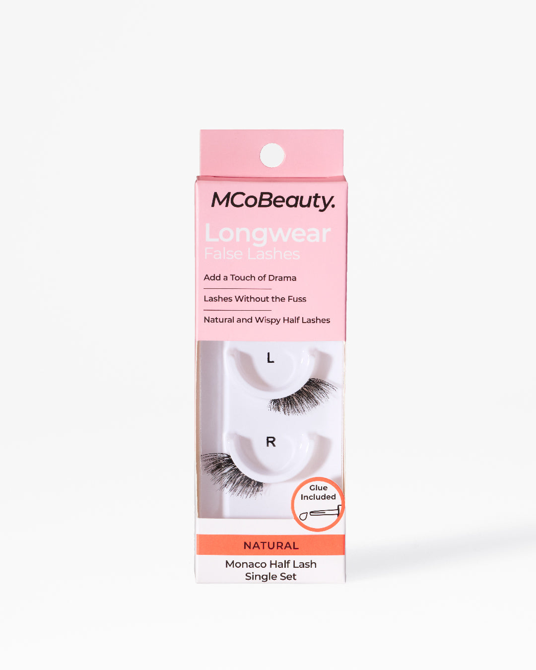 MCoBeauty LONGWEAR FALSE LASHES NATURAL – MONACO HALF LASH SINGLE SET are your signature must-have! Whether you’re a lash beginner or a professional. love a baby cat-eye look or wish to layer up for extra glam. this lightweight. subtle and easy-to-apply lash is perfect for any look! Add a touch of drama without overwhelming the eye. designed to put you in control of your own lash moment .