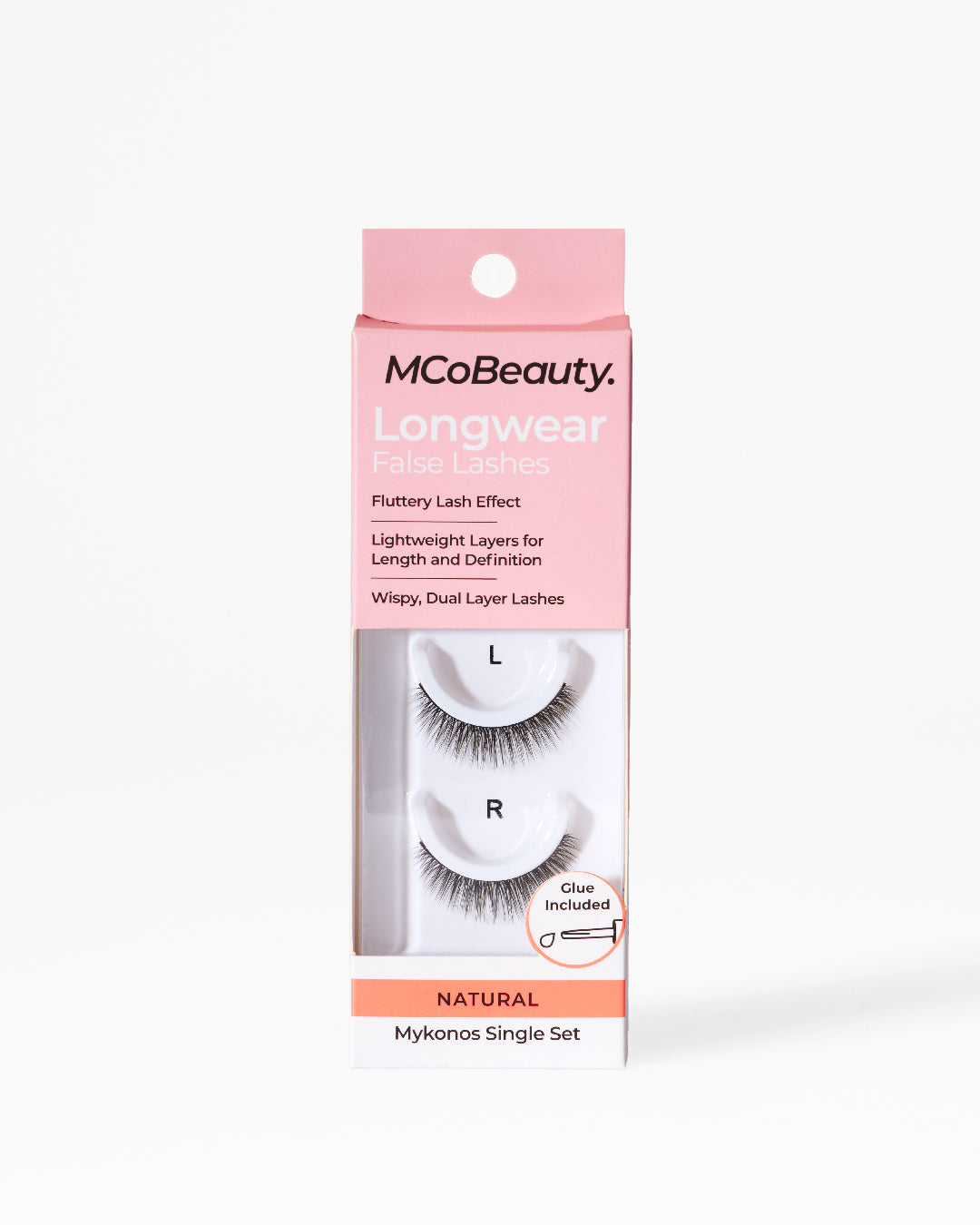 The MCoBeauty LONGWEAR FALSE EYELASHES- MYKONOS SINGLE SET are a wispy and soft pair of lashes with layered tiers for natural looking lushness. Add subtle length and layers to any eye look. The lightweight band makes it easy to apply and are universally flattering. Perfect for day or night looks. these Faux Mink lashes give an instant boost to your day.
