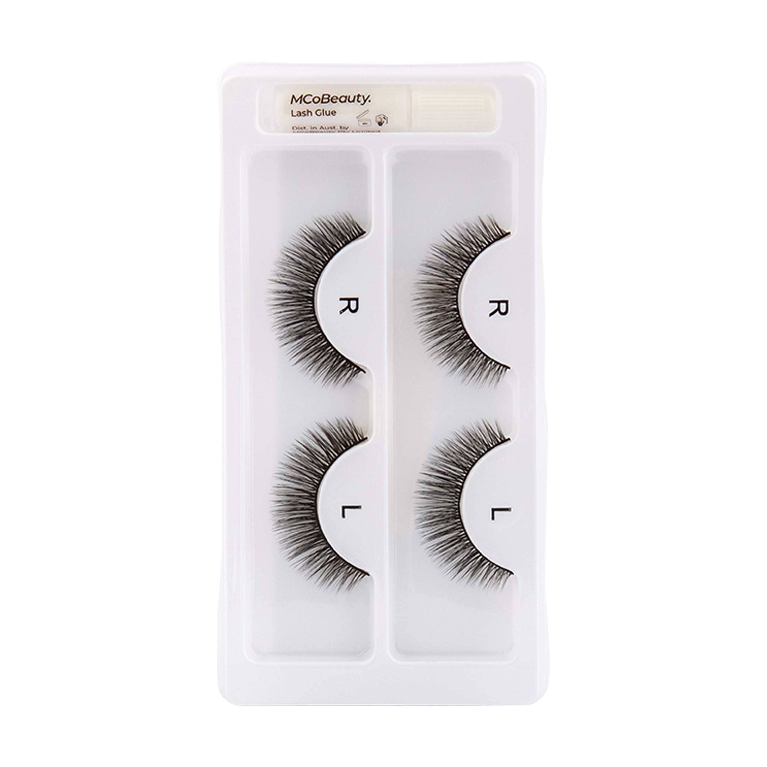 The MCoBeauty LONGWEAR FALSE LASHES- MYKONOS DUO VALUE SET are a fluttery dream that has a criss-cross formation and tapered fibres for the ultimate natural serve. Enhance your day or night look by pairing these lashes to intensify your no-makeup. makeup look or to achieve extra volume with your glam eye look. It is designed to be longer in the centre and fanned out softly on the edges. delivering a doe-eyed look.