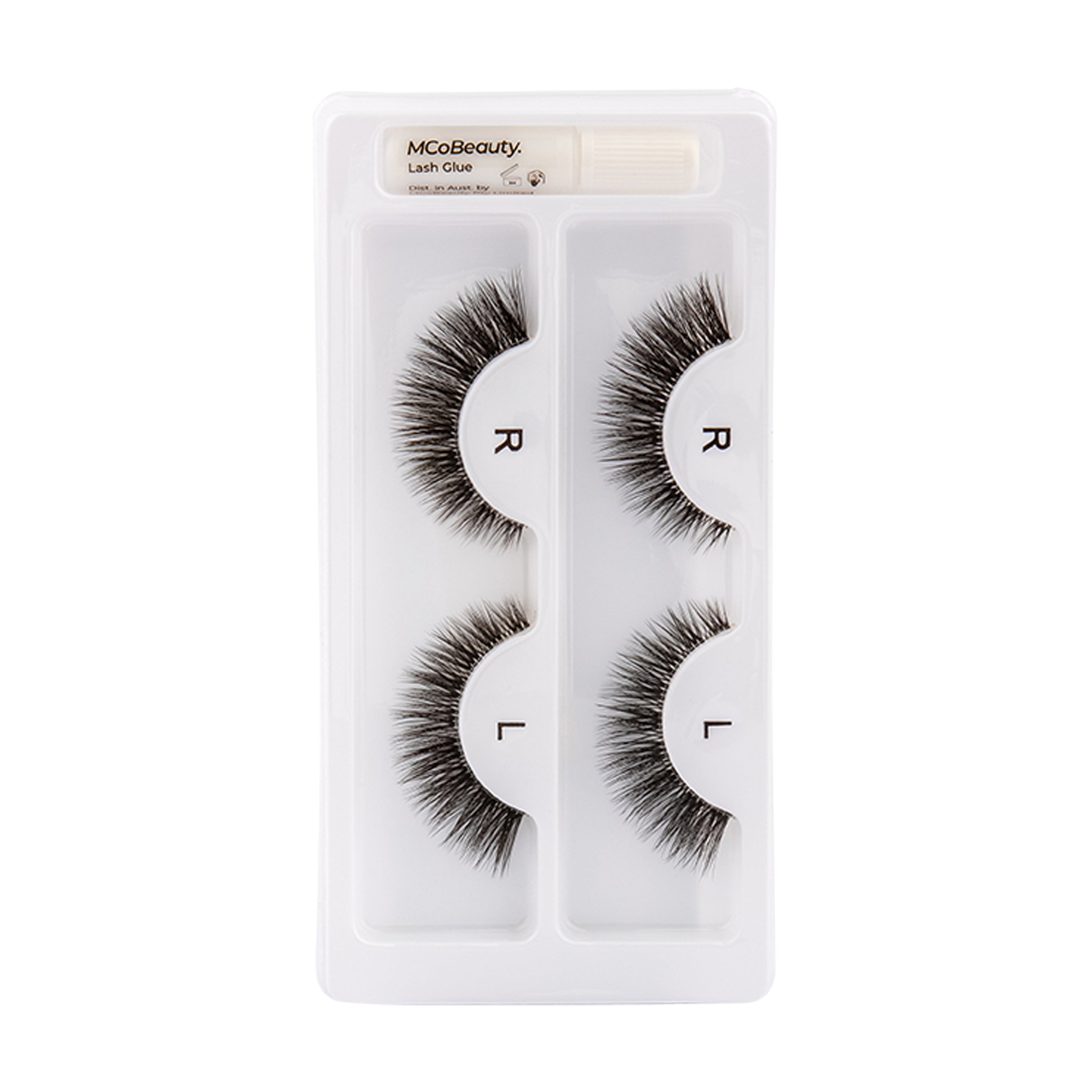 The MCoBeauty LONGWEAR FALSE EYELASHES – ROME DUO VALUE SET are a two-pack dream that adds subtle definition and volume to your natural lashes. Features longer lashes on the outer corner to help widen eyes and heighten drama. The invisible band helps to blend in seamlessly with your natural lashes and weightlessly sits on your lash line providing comfort all day long.