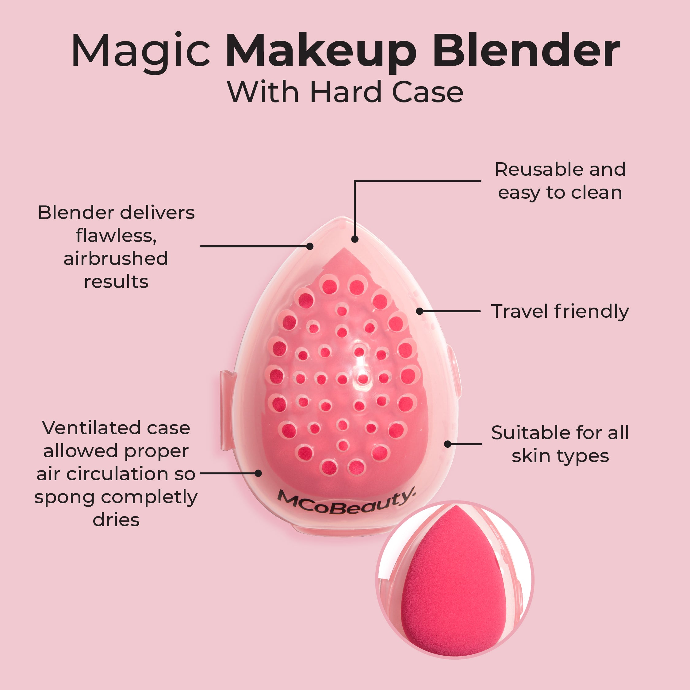 Keep your makeup blender clean and protected on-the-go with the MCoBeauty MAGIC MAKEUP BLENDER WITH HARD CASE. featuring an ultra-soft beauty sponge and a translucent hardcase with vents. perfect for storing and transporting your sponge. Your makeup blender will always be ready to give you a flawless finish. worry free.