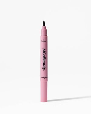 MCoBeauty MINI WINGED EYELINER STAMP & LIQUID LINER DUO is an innovative dual ended tool designed to create perfect symmetry and intense colour with each application. The felt Eyeliner Stamp delivers the perfect feline flick with minimal effort. while the Liquid Liner creates a dramatic. high definition finish.