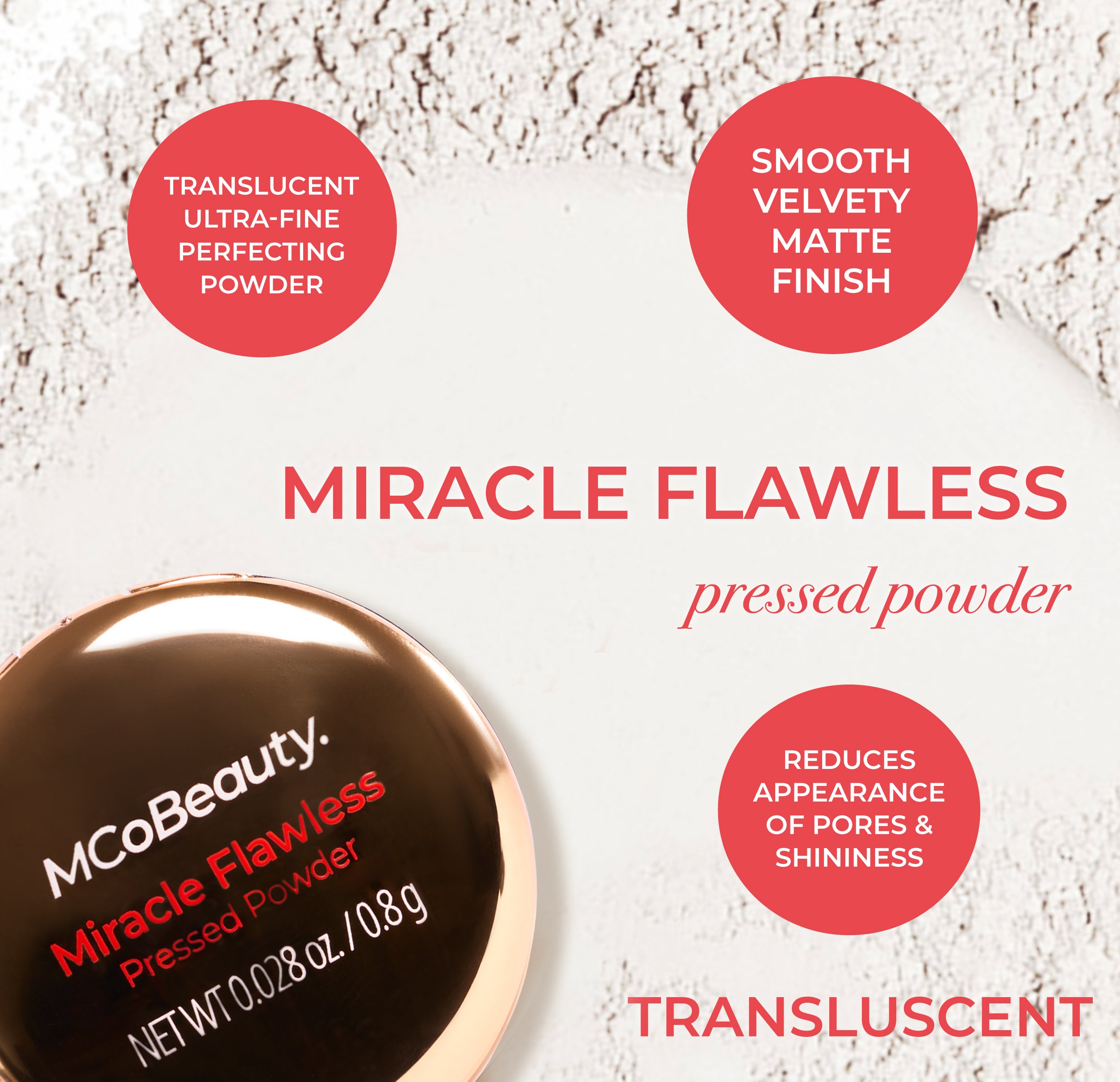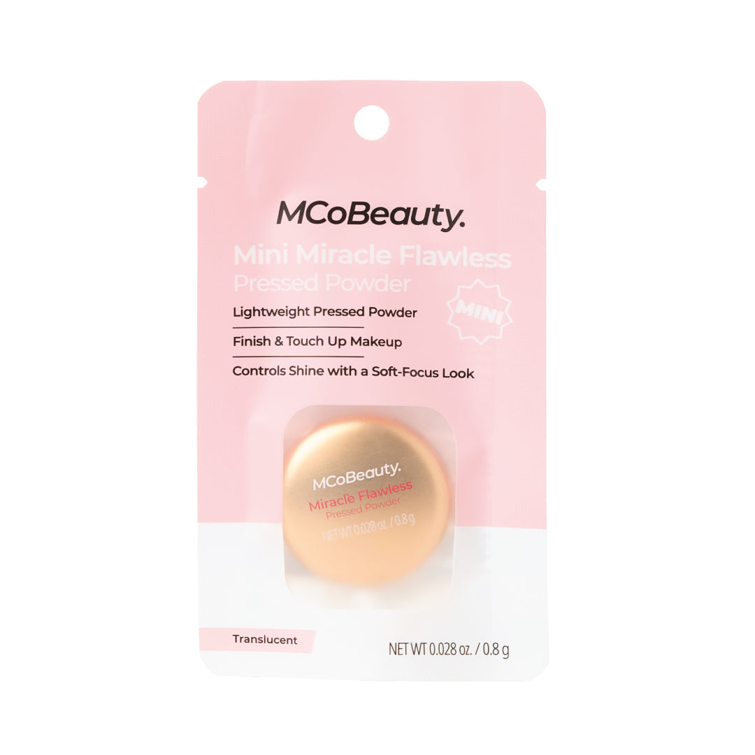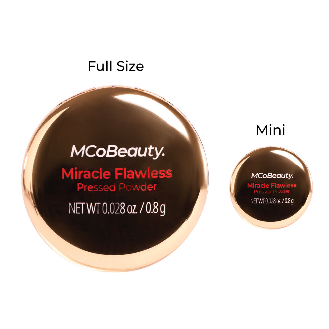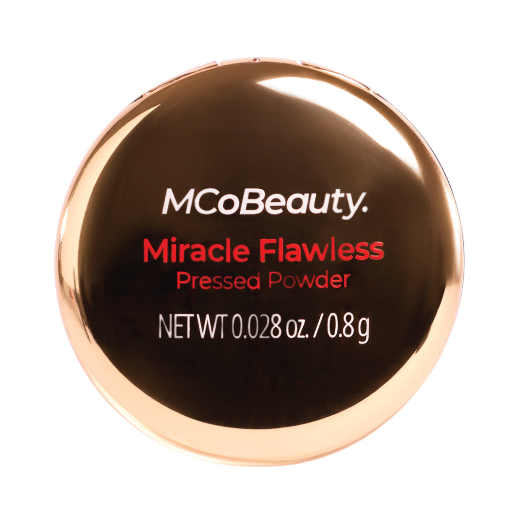 MCoBeauty MIRACLE FLAWLESS PRESSED POWDER is an ultra-fine finishing powder that delivers unbeatable wear to visibly reduce shine with a mattifying effect. Rose Flower Extract and Sweet Almond Oil hydrate and help soothe while a blend of superfine particles double down on smoothing the look of skin texture. pores. fine lines and imperfections. The formula applies a sheer veil of color. without disrupting your products underneath – the perfect complexion enhancer!