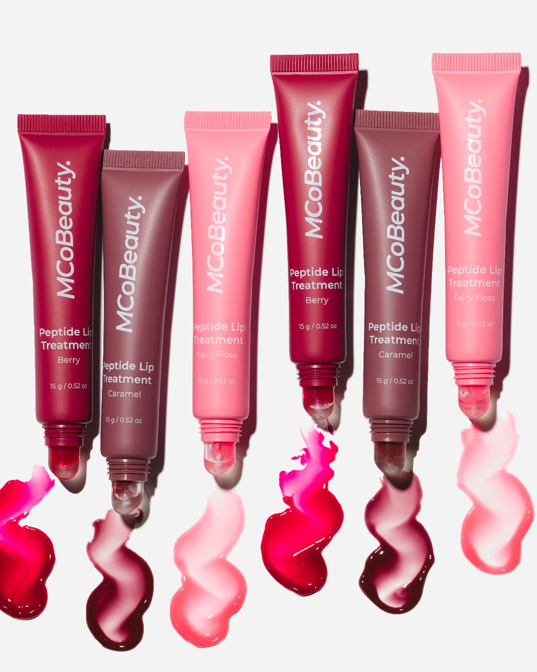 MCoBeauty PEPTIDE LIP TREATMENT is the ultimate all-in-one cream-oil gloss to instantly hydrate and lock in moisture for the juiciest looking pout. The luxurious. non-sticky formula rich with skincare-powered actives. cushions lips to visibly plump and smooth fine lines. Specifically formulated with lip-loving peptides and shea butter to boost lip health and help repair dry. cracked lips for maximum fullness. The soft. flexible curved tip applicator delivers a universally flattering wash of color. with just one swipe. Drench your lips in glassy shine!