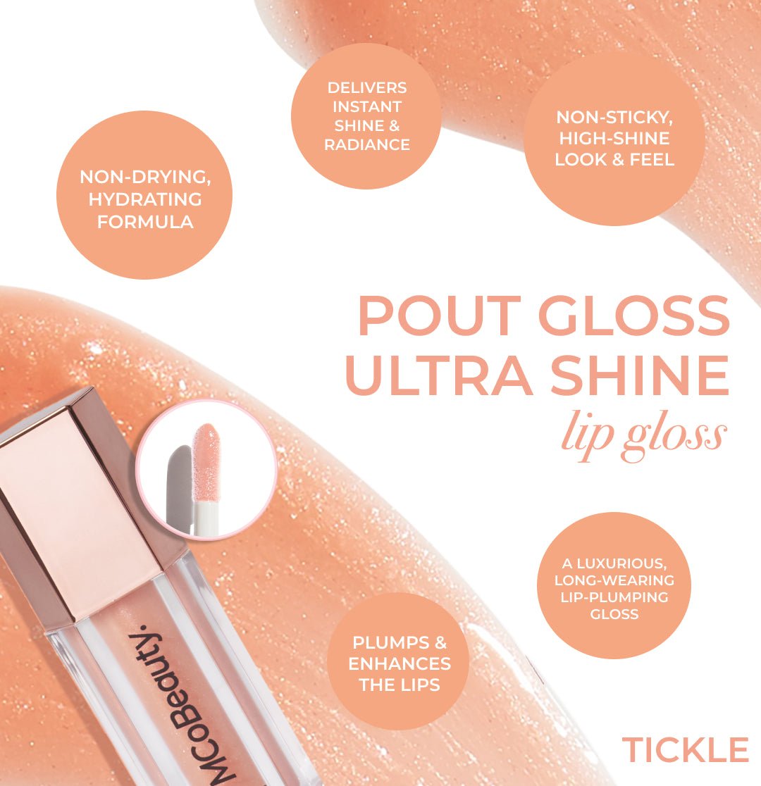 The MCoBeauty POUT GLOSS ULTRA SHINE LIP GLOSS is a luxurious. long-wearing lip-plumping gloss that delivers a sheer tint of color and light-reflecting radiance to plump and volumize the lips.