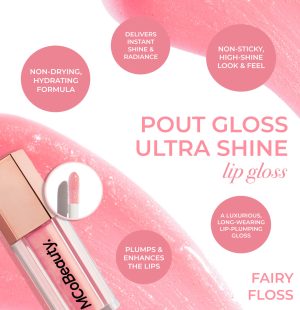 The MCoBeauty POUT GLOSS ULTRA SHINE LIP GLOSS is a luxurious. long-wearing lip-plumping gloss that delivers a sheer tint of color and light-reflecting radiance to plump and volumize the lips. Ultra-comfortable and long-wearing. this sparkling gloss wears perfectly on their own or over your favorite lipstick.