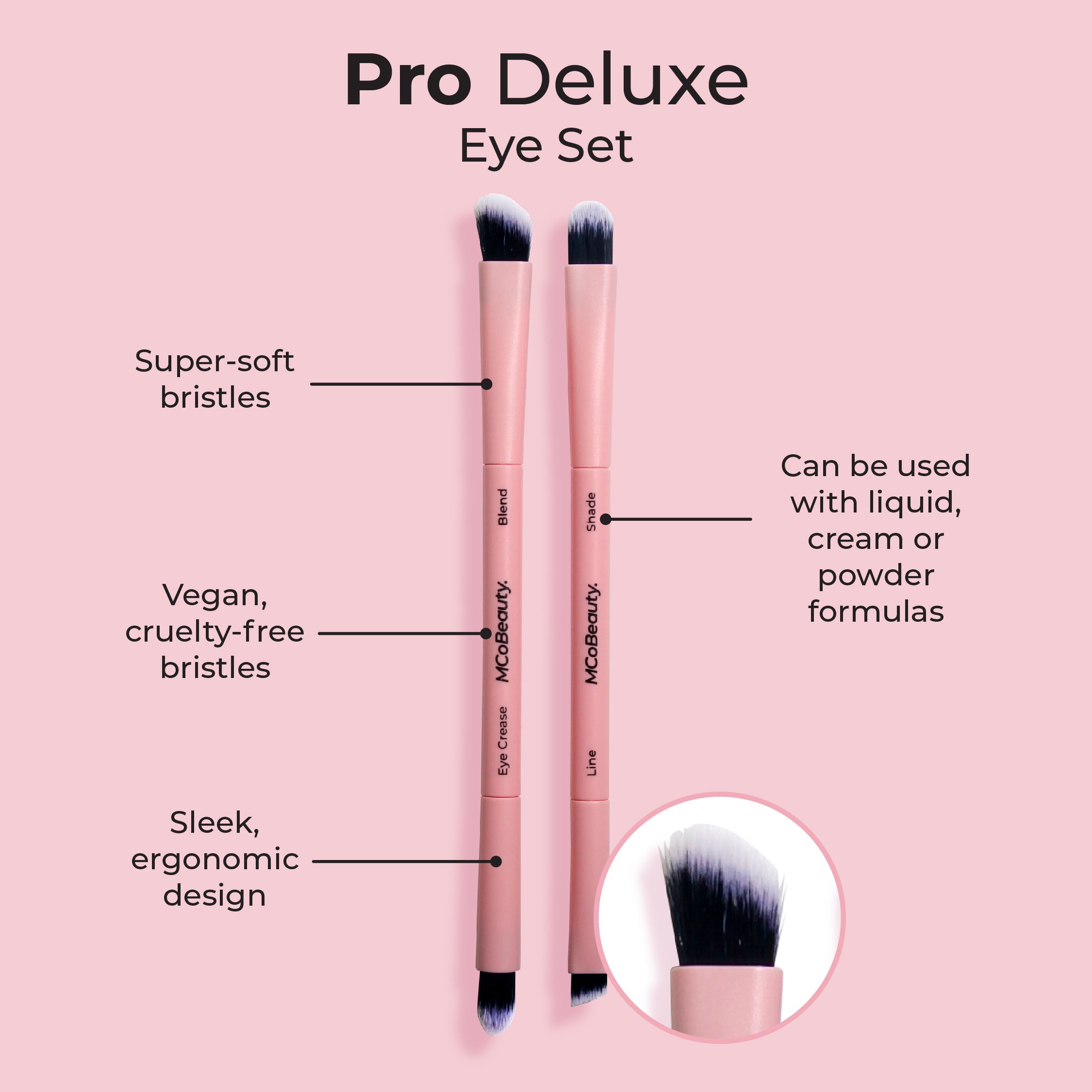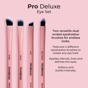 The MCoBeauty PRO DELUXE EYE SET is a 4-in-1 eye brush set to achieve endless eye looks. from natural to dramatic.