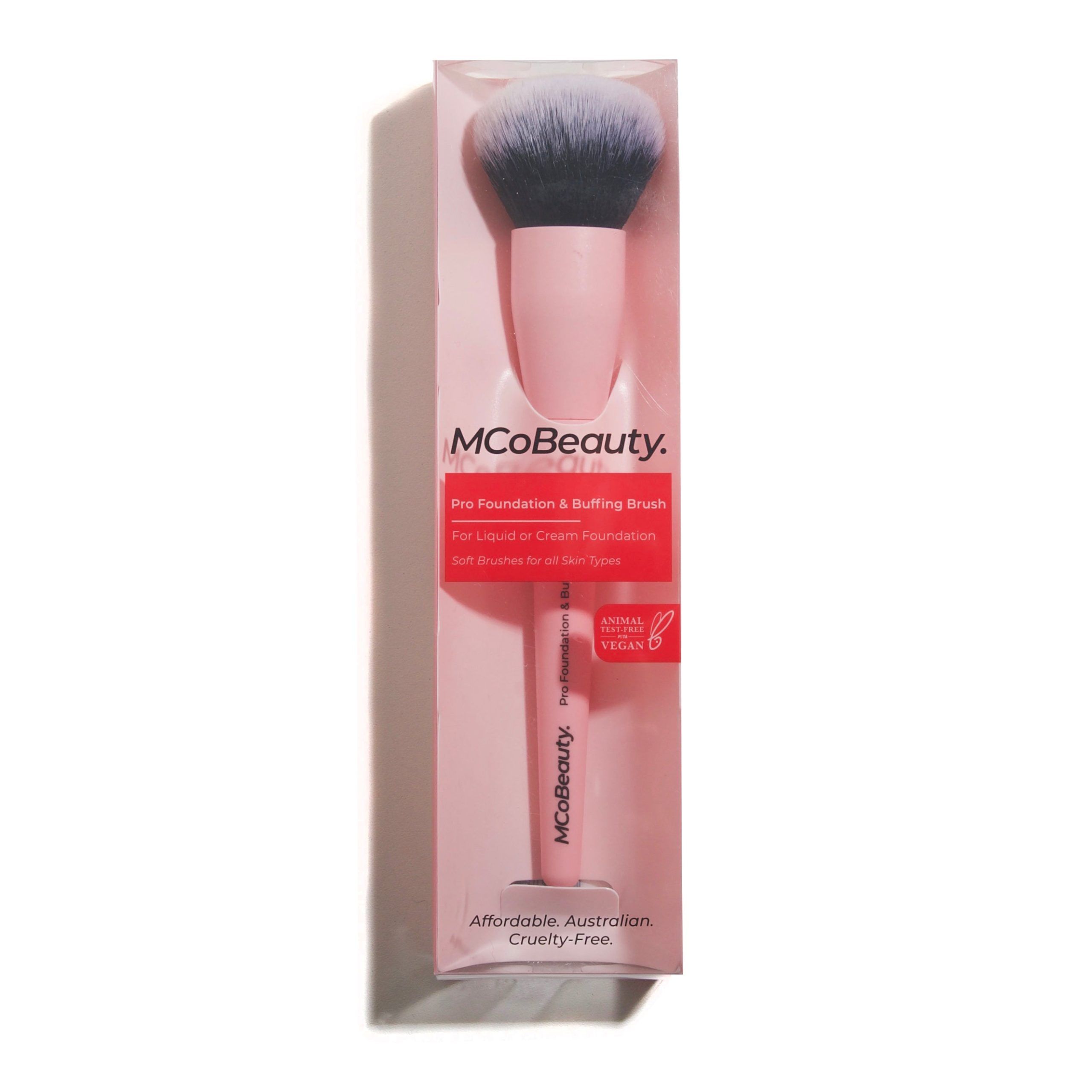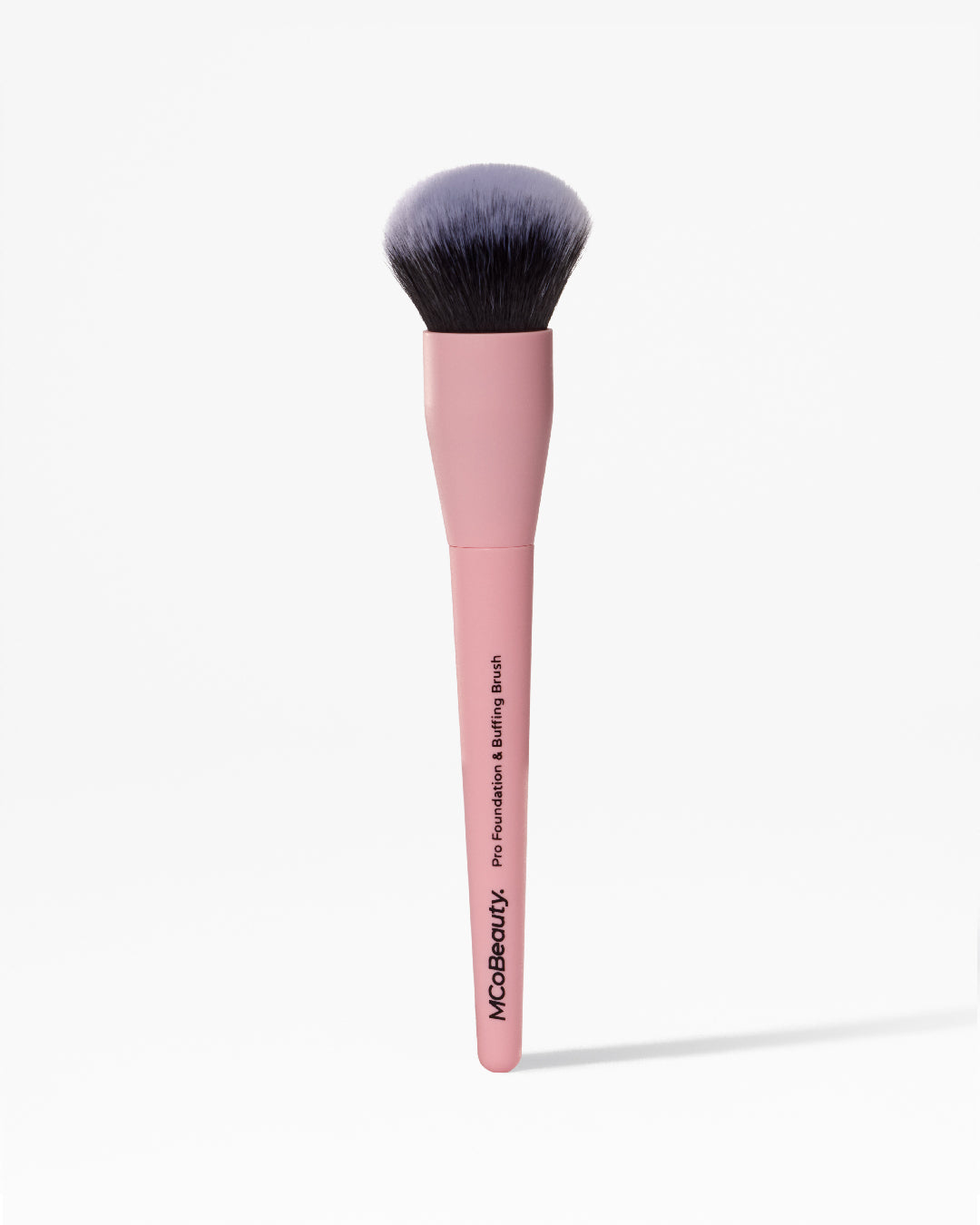 PRO FOUNDATION & BUFFING BRUSH from MCoBeauty is your go-to tool for effortless application of your liquid or cream foundation. The kabuki-style brush head is densely packed with cruelty-free and vegan bristles in a rounded formation to buff product across your face with ease.