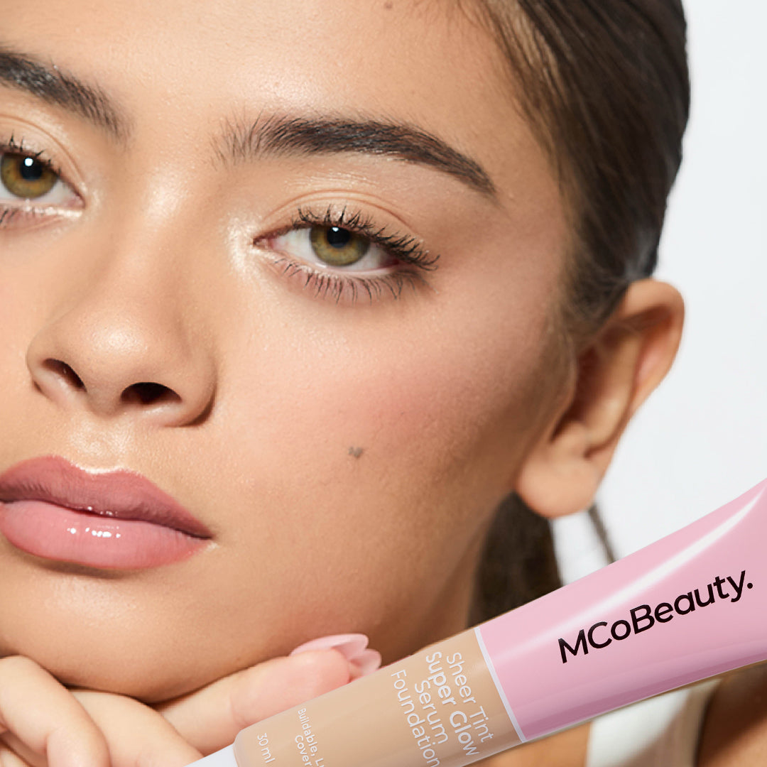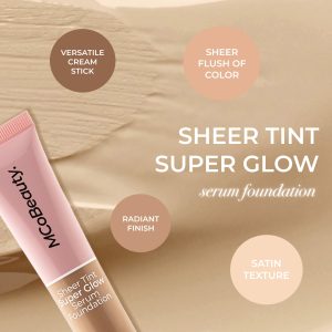 MCoBeauty SHEER TINT SUPER GLOW SERUM FOUNDATION pairs the fluidity of a serum with the benefits of an ultra-invisible. skin perfecting foundation. Purposed to be your daily one-and-done. this bare-skin look foundation offers just the right amount of coverage for you to wear on your no-makeup. makeup days. Powered by ultra-filling spheres. this serum foundation is designed to re-hydrate skin. resulting in a tighter. smoother. more firmer looking complexion. This lightweight formulation acts as a luxurious skin solution with it’s inclusion of Kiwi Fruit Extract and Shea Butter for long-term hydration and protective antioxidant benefits. Skin is left feeling and looking fresh. vibrant and revitalised.