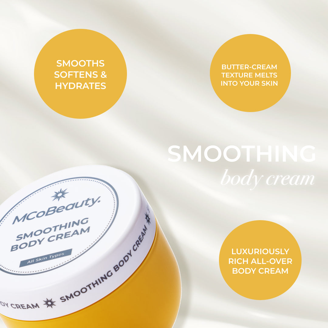 MCoBeauty EVERYDAY SMOOTHING BODY CREAM is formulated with Caffeine. Cacao Extract. Shea Butter. and Coconut Oil to encourage a supple and smooth skin texture. It’s scented with MCoBeauty No.2. a captivating and sultry fragrance featuring warm notes of Pistachio and Sandalwood. topped with Caramel and Vanilla.