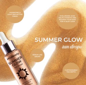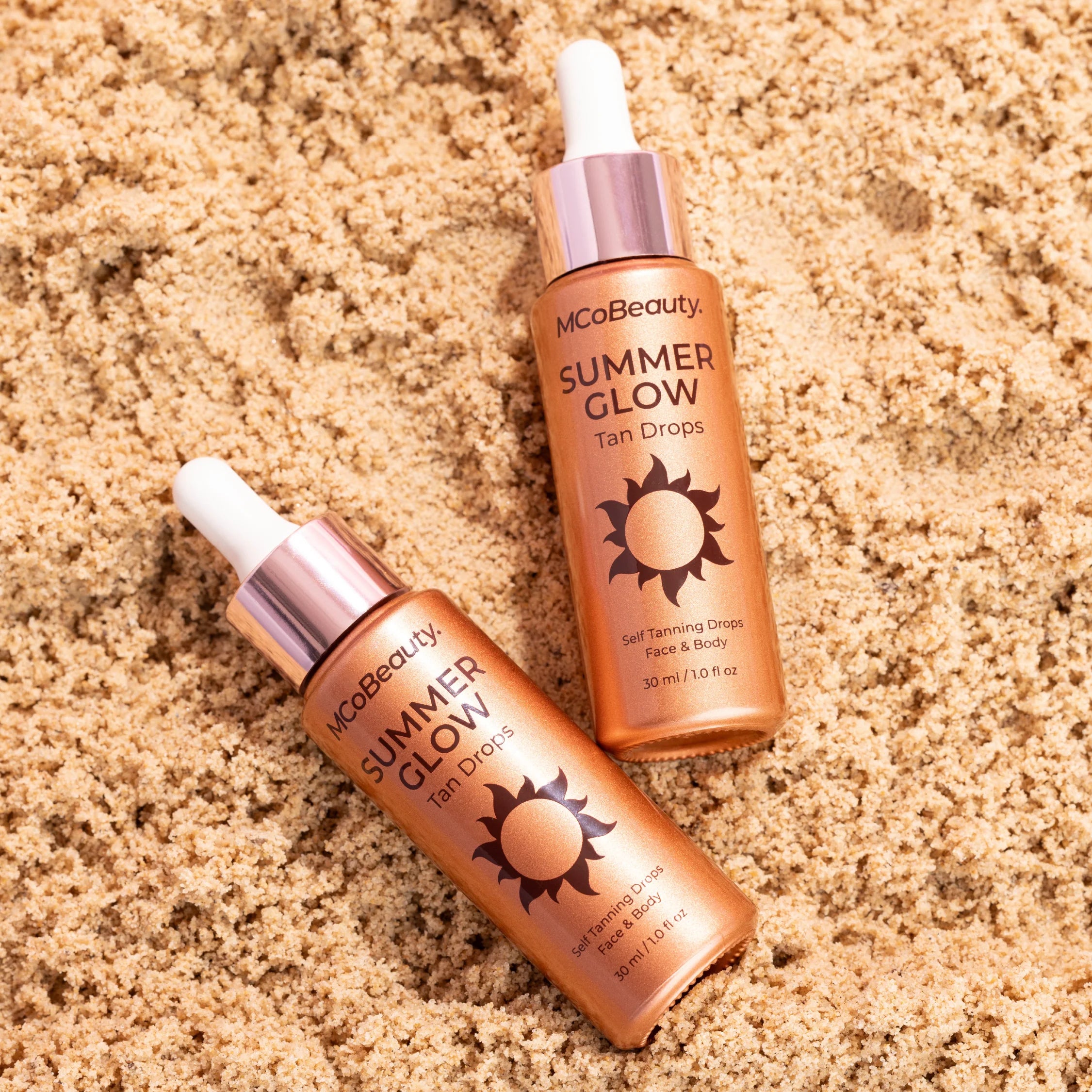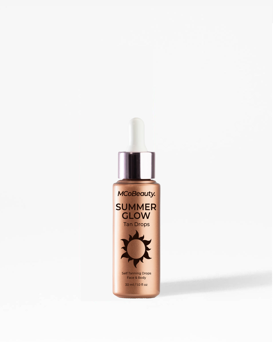 MCoBeauty SUMMER GLOW TAN DROPS combines the subtlety of a gradual tanner with active skincare for a buildable. bronze glow. Designed to be mixed with your skincare or body care. this formula gives your skin a sun-kissed look without stepping outside and couldn’t be easier to use.