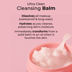 MCoBeauty EVERYDAY ULTRA CLEAN CLEANSING BALM is an ultra-effective yet super gentle cleansing balm that breaks down stubborn makeup. dirt. oil. SPF as well as pollutants and impurities revealing a delightful transformation of clean. balanced and hydrated skin. This luxuriously rich formula includes a fan-favorite. Hyaluronic Acid. to leave your skin with a boost of hydration and youth enhancing Collagen to leave your skin feeling soft and luminous.