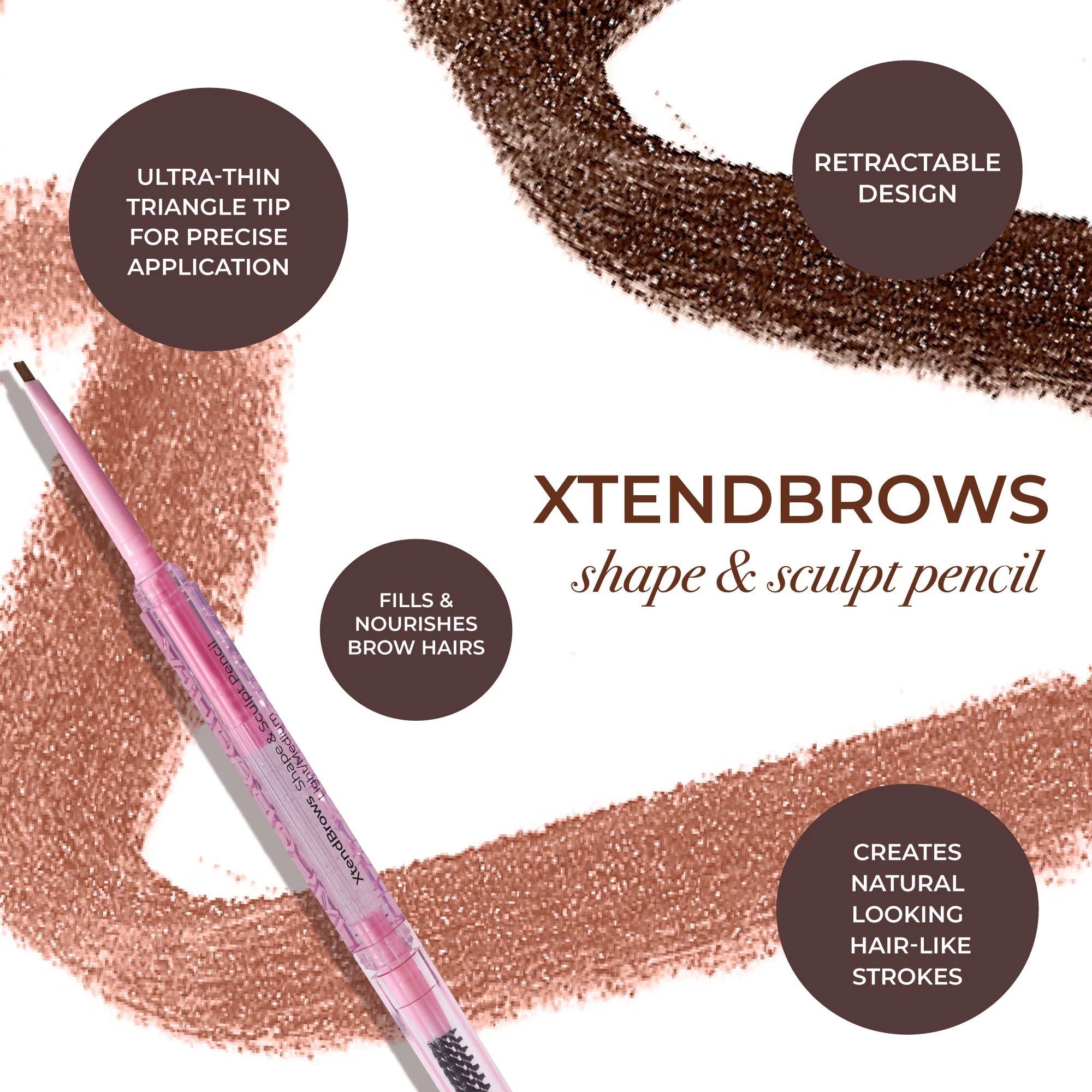 The MCoBeauty XTENDBROWS SHAPE & SCULPT PENCIL is a long-wearing and pigmented formula that fills in sparse brows with natural hair-like strokes. The nourishing formula is infused with Castor Oil and B5 to help condition and support the growth of brow hairs. while the precise triangle tip is perfect for creating natural hairlike strokes. This product naturally fills in gaps without looking heavy and artificial. while the spoolie brush helps sculpt brows to perfection.